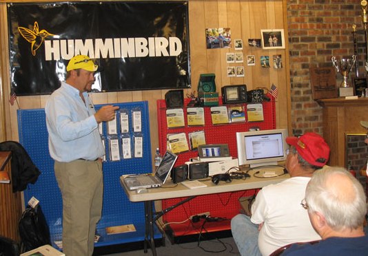 Topics Available: * Electonics and the use in Fishing. I have studied and learned alot about Fishing electronics. This presentation includes the History and Basics of Sonar all the way to advanced uses of the most advanced products today: Humminbird Side Imaging Sonar. Seminar can be expanded with several add-on segments: GPS uses in todays fishing, Vertical Fishing with Down Looking Sonar, The In's and Out's of Side Imaging Sonar. I am very kowledgible in Electronics and Especially Side Imaging Sonar and have many qualifications as a knowledge source. I have logged thousands of Side Imaging On-the-Water Demos, I am the founder of the Yahoo Side Imaging group with over 2500 Members and am actively involved on several message boards helping and educating owners on sonar uses. I have trained everyone from beginning anglers to tour level Pros.